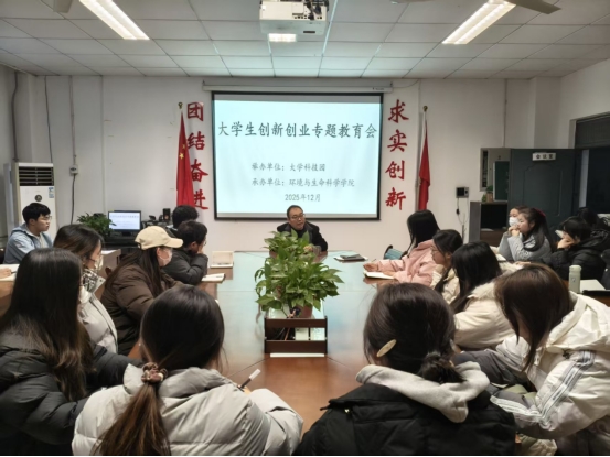 12月26日上午,大学科技园与环境与生命科学学院联合举办大学生创新创业专题教育会。科技园总经理何泰伯、学院党总支书记魏睿出席会议,与50余名学生代表进行交流。